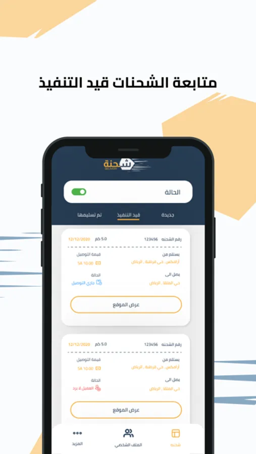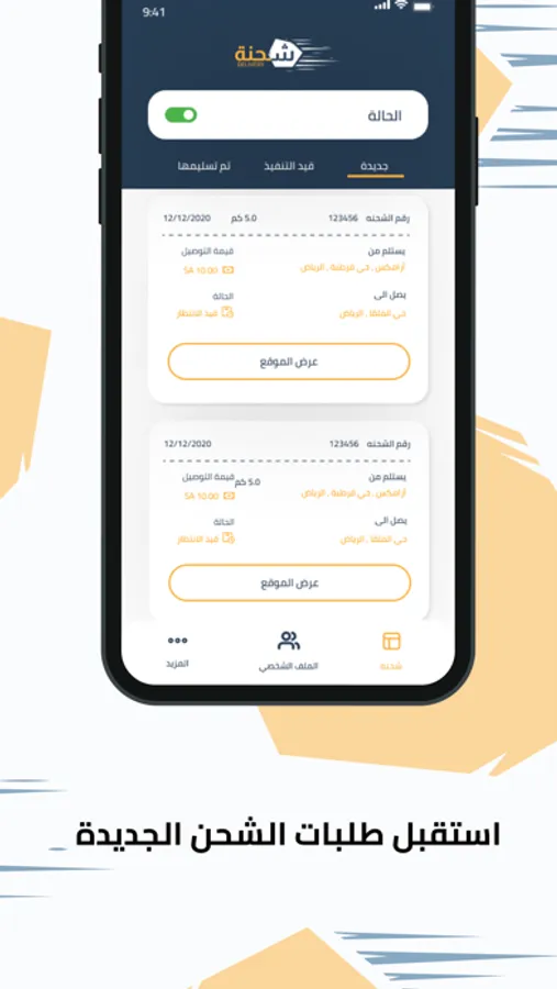 تطبيق شحنة يسمح للشركات بالاستفادة من توصيل شحناتهم من قبل السائقين ، يمكنك الان التسجيل كسائق والربح من التطبيق .