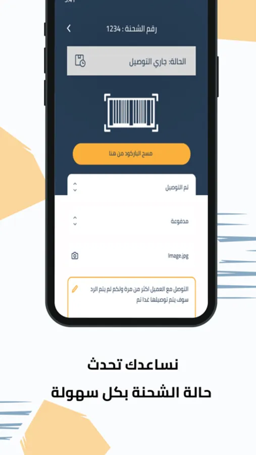 يمكنك ايضا تحديث الحالة للشحنة والمتابعة مع الشركات