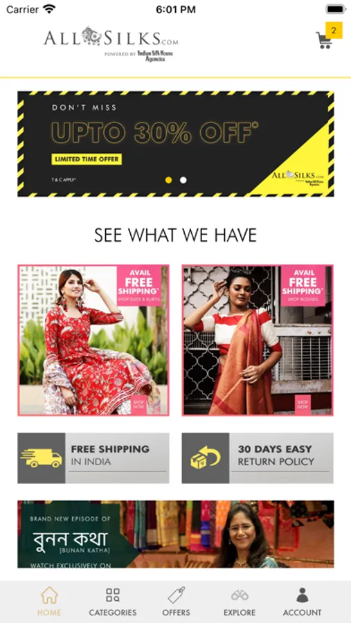 2000+ Ready to ship Sarees. Prestitched sarees. Wedding sarees. Fancy sarees. Buy now! 900+ sarees under Rs.4000. Video shopping. Free fall picco. Blouse stitching available. Easy 30-Day Return. Everyday new sarees. Cash On Delivery. Designer Blouse ReadyWear.We also have a wide range of Kurtis, Fashion Jewellery, Stoles, Menswear, Dupattas, Fabrics, Kids Sarees and Kids Indo Western wear. We deliver Indian Silk Sarees across the world and it typically takes 3-5 working days to ship.