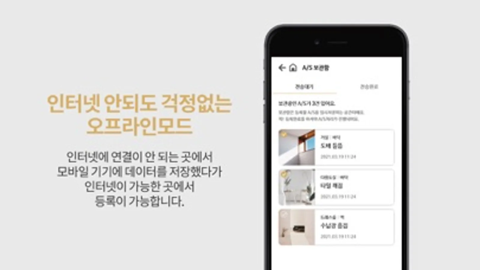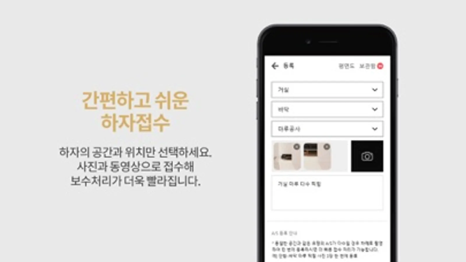 하자접수 내역 확인은 물론 보수 처리 서명까지 똑똑하게 하실 수 있어요.
