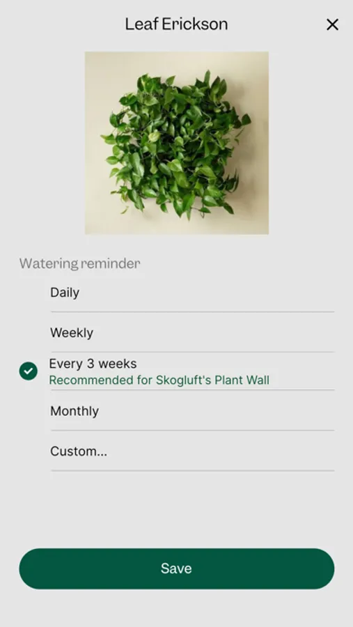 - The possibility to add your living walls, and get watering reminders on your preferred schedule