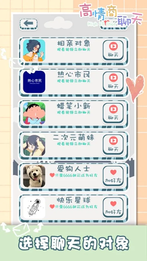 这是一款轻松、休闲的对话类闯关益智游戏,通过完成对话来轻松幽默的达成与不同人的交流,每一关都是一个小故事,每一关对话一位不同的人。