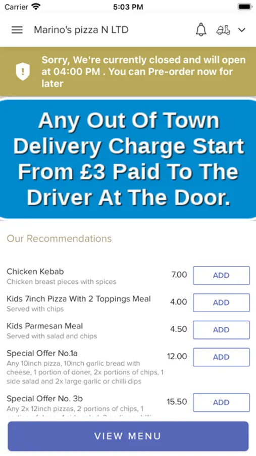 Order food online in Darlington! It's so easy to use, fast and convenient. Try our new, online app which contains our entire takeaway menu. The Marino's Pizza is located in Darlington, Darlington. You can now order online, all your favourite dishes and many more delicious options, and have them delivered straight to your door in no time at all.