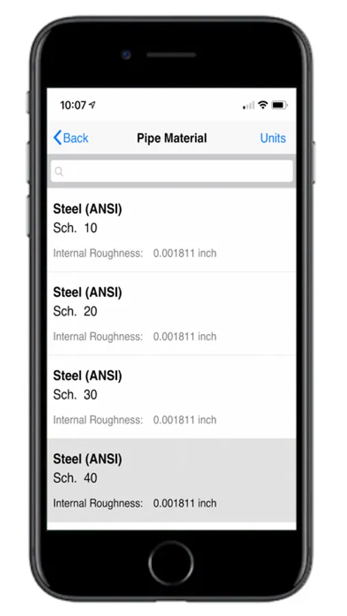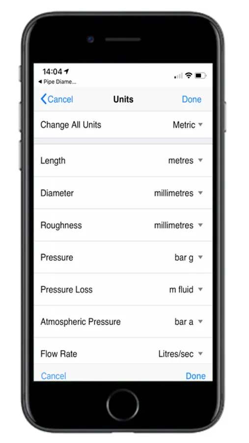 The App can operate in Imperial or Metric units and each individual field can be further customised to use a specific unit. Results values can be displayed to a specified number of decimal places.