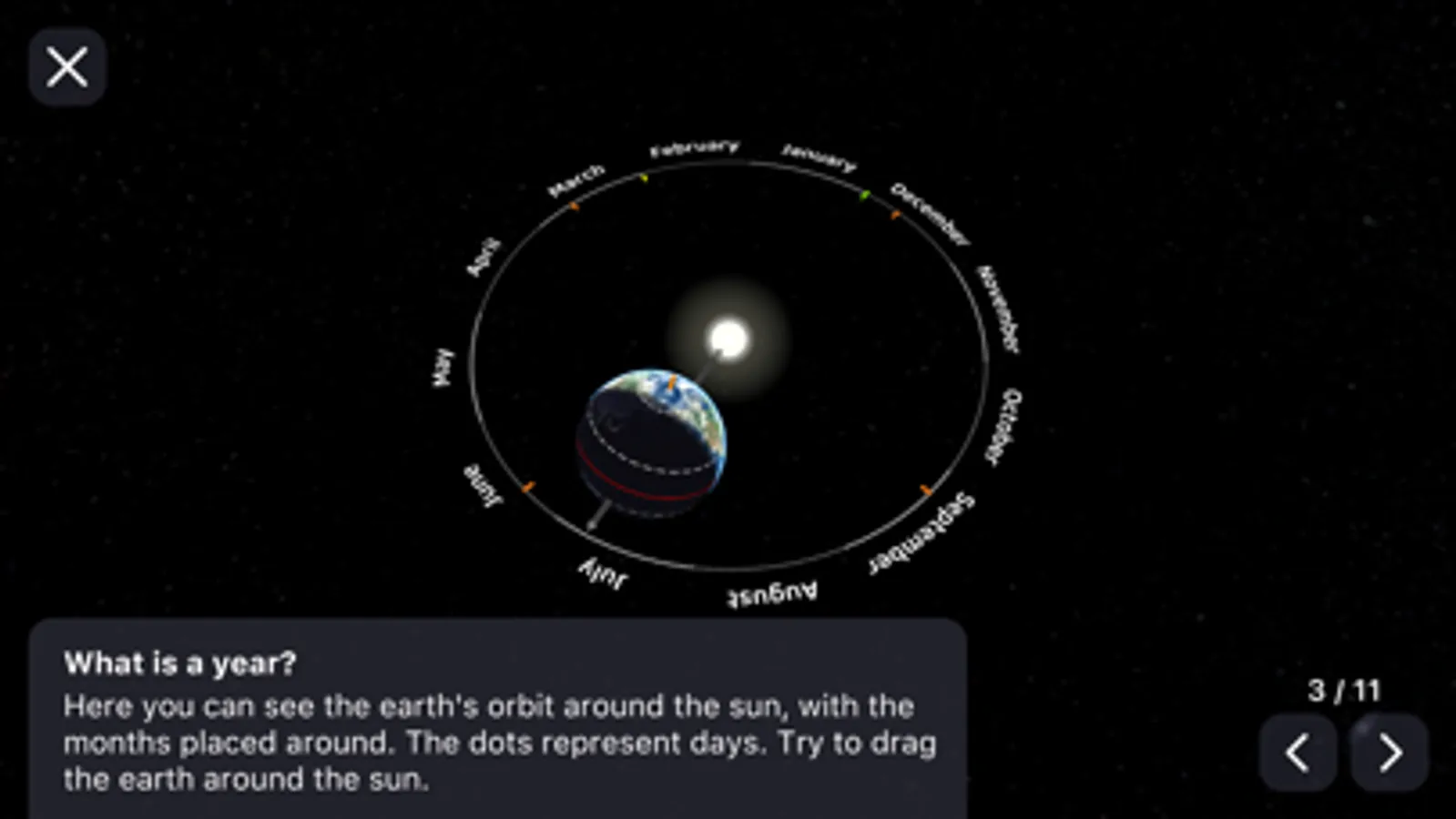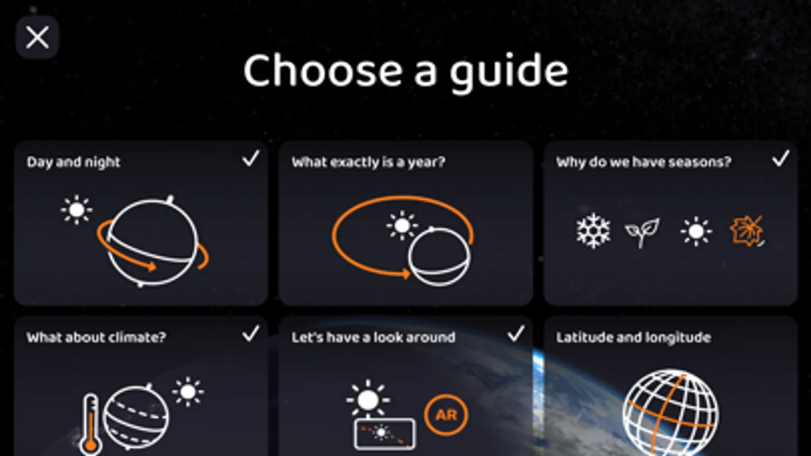 You can get answers to these questions and many more in the app’s many guides. Astronomical concepts are explained pedagogically step by step with various interactive elements that deepen the understanding.