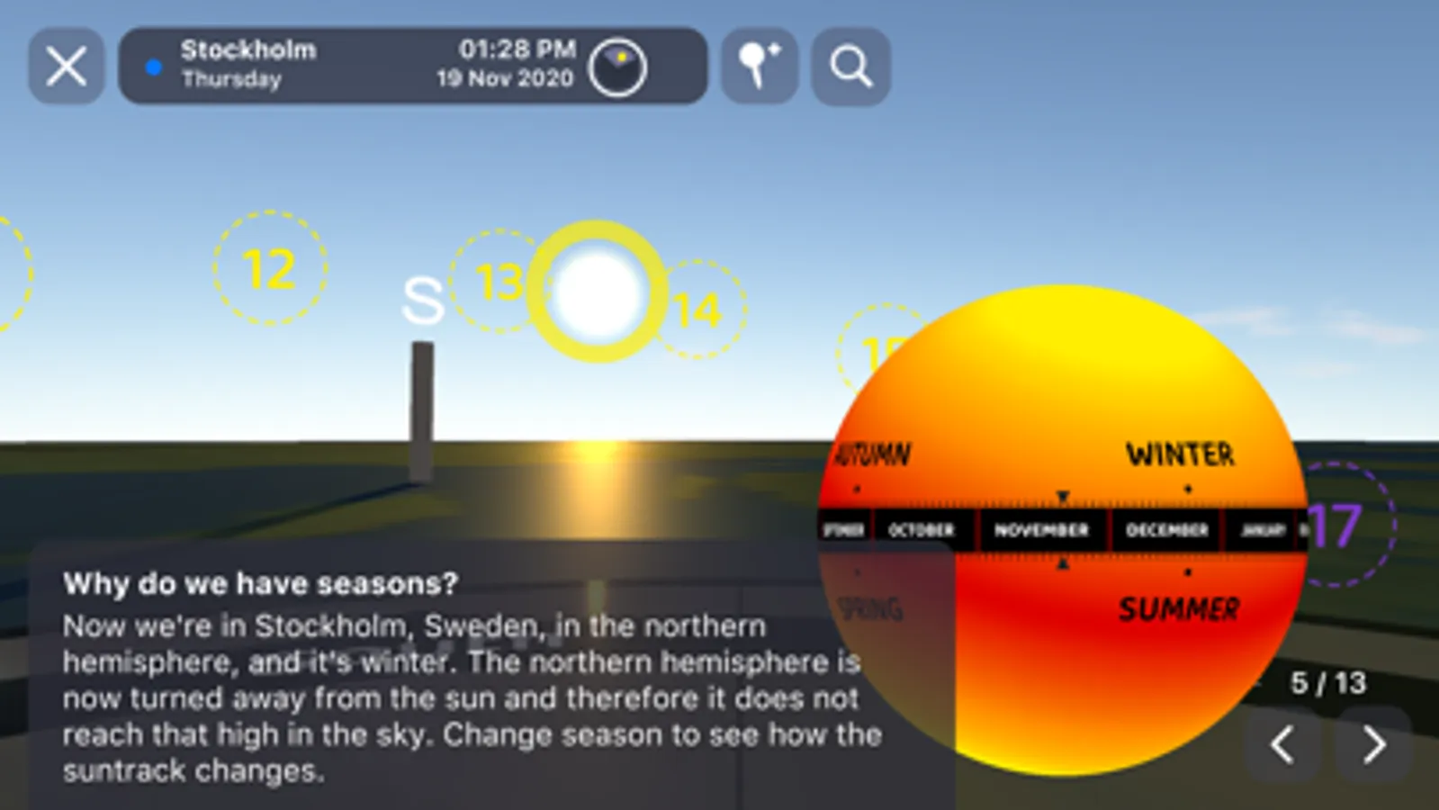 You can get answers to these questions and many more by exploring and experimenting in the Sandbox mode of the app. Here you can visit all corners of the Earth and compare places with each other. This part is full of aha moments for both kids and grown-ups.