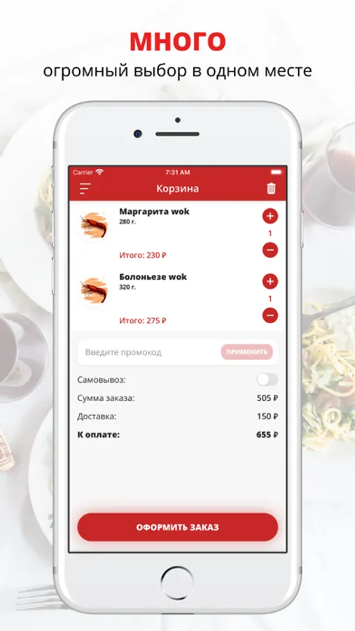 Скачивайте наше приложение, оформляйте заказ и наслаждайтесь любимой едой, где бы Вы ни были! Приятного аппетита!