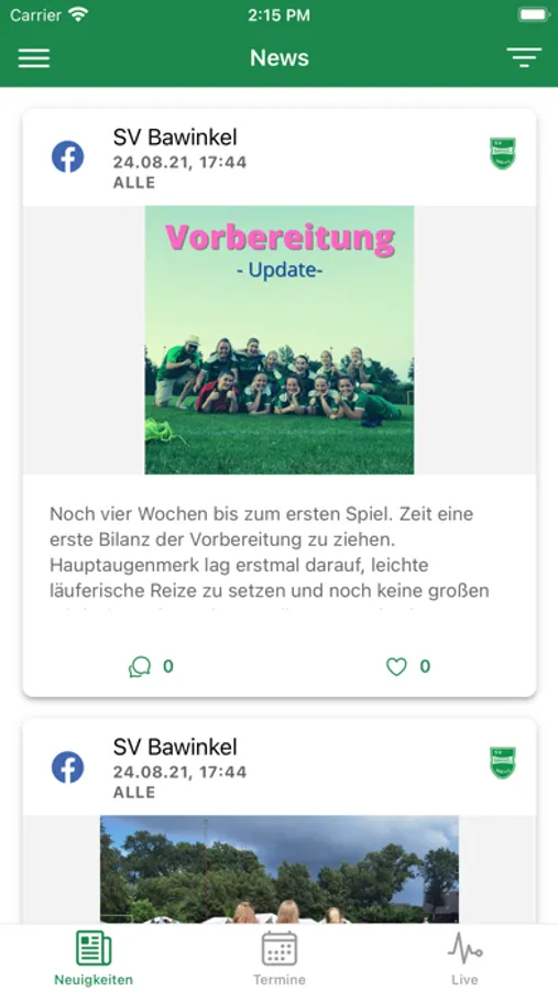 Durch die Einbindung sozialer Netzwerke kannst du das Geschehen im Verein brandaktuell mitverfolgen.