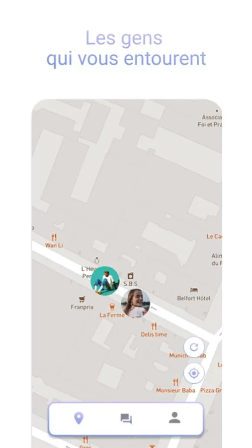 Lorsque vous ouvrez l’application, les utilisateurs qui sont autour de vous s’affichent sur la carte.