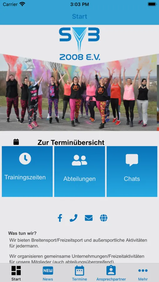 Ab sofort sind nicht nur unsere Mitglieder sondern auch der Verein mobil. In unserer eigenen App könnt ihr euch unter anderem über Aktuelles aus dem Verein informieren, Sportangebote suchen, Termine einsehen und SVB2008 Fan-Reporter werden. Der Sportverein Bottrop 2008 e.V. bietet mit dieser App interessante Einblicke für Fans, Mitglieder und Interessierte.