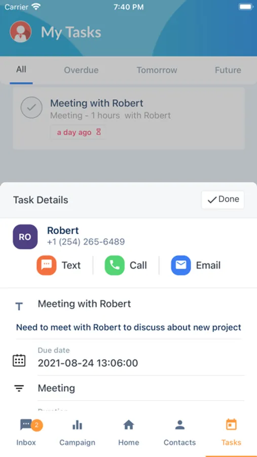 CRM Application helps to manage contacts, tasks and campaigns easily
