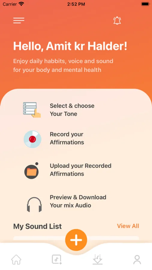 Recitation App which allows you to record or to upload 3 affirmations. Once you choose your "mindfulness tone" the app will then cause your affirmations to be played back through separately through each ear. This creates a certain kind of attention in the mind. The affirmations along with the mindfulness tone is what helps the message seep deeper into the subconscious mind. When this method is practiced regularly it will lead to the manifestation of the affirmation.