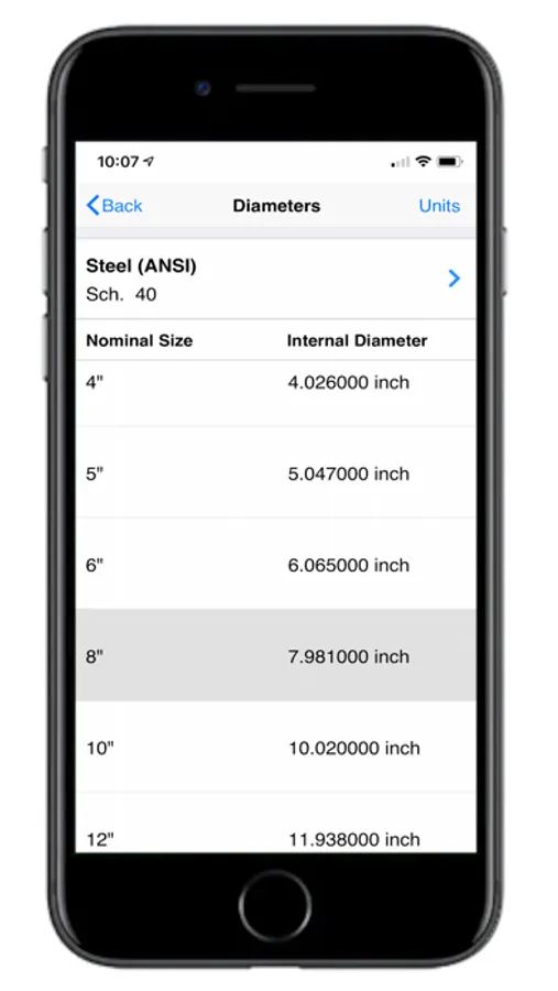 The App can operate in Imperial or Metric units and each individual field can be further customised to use a specific unit. Results values can be displayed to a specified number of decimal places.