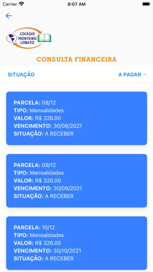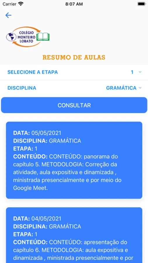 Monteiro Lobato, aplicativo para melhor interação entre escola, responsáveis e alunos. Possibilitando consultar notas, resumo de aulas, financeiro e eventos escolares.