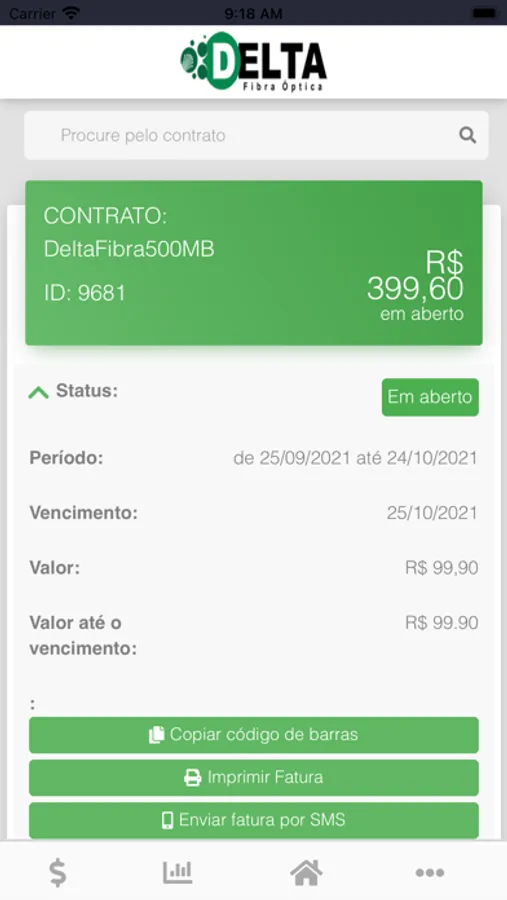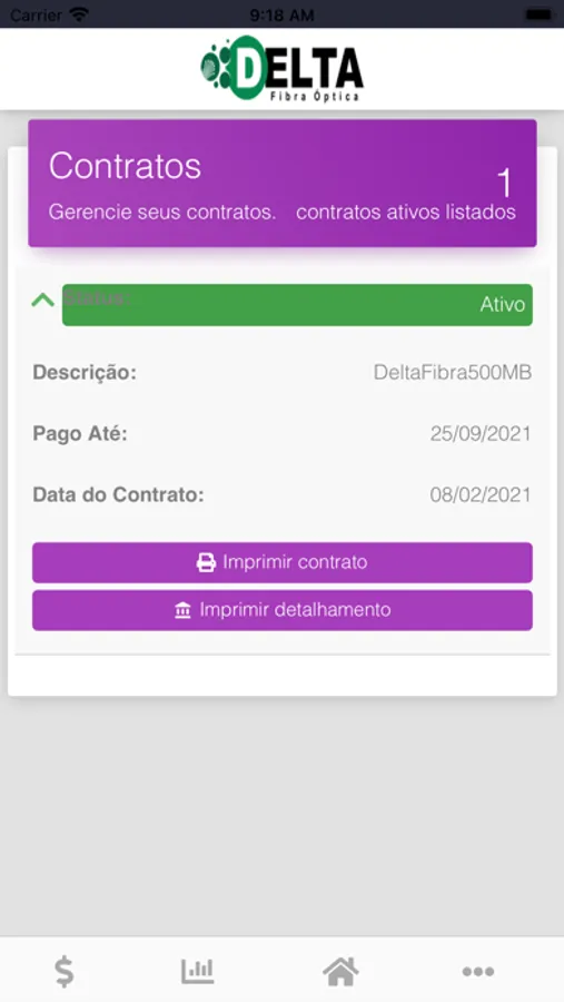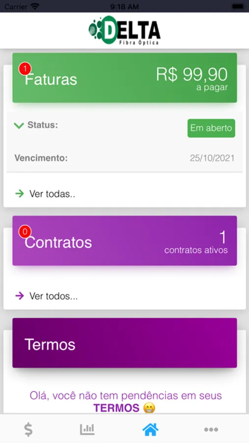 Com o aplicativo Central Delta Fibra você poderá consultar as suas faturas, assinar seu contrato digitalmente, verificar o seu consumo de banda e muito mais!