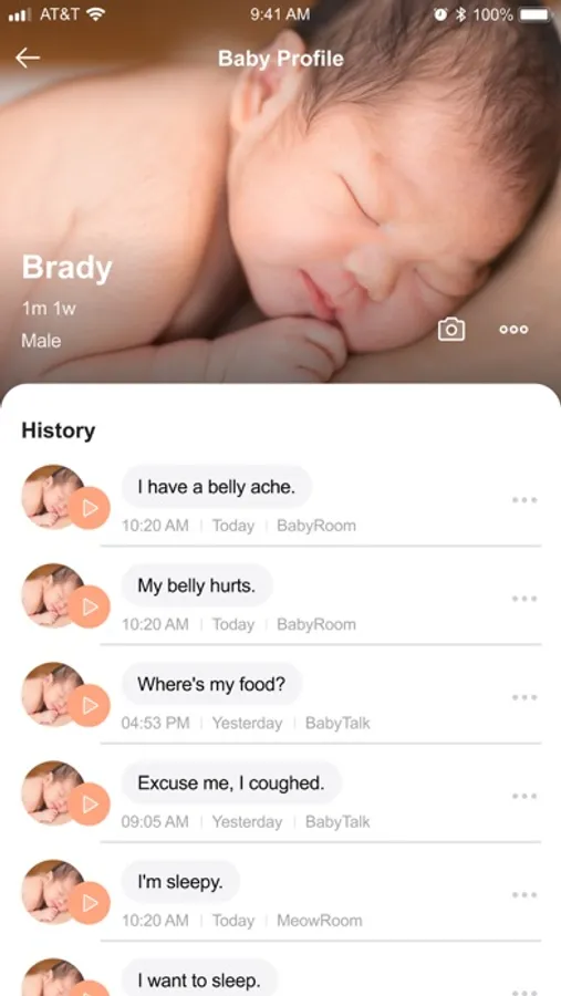 Every baby has an innate vocabulary that they use to communicate with their parents in the form of cries, sounds and noises. This is not necessarily a language, but we can use Machine Learning to interpret an individual baby’s sounds and translate that into a human readable language. BabyTalk by MeowTalk LLC gives your baby a voice!