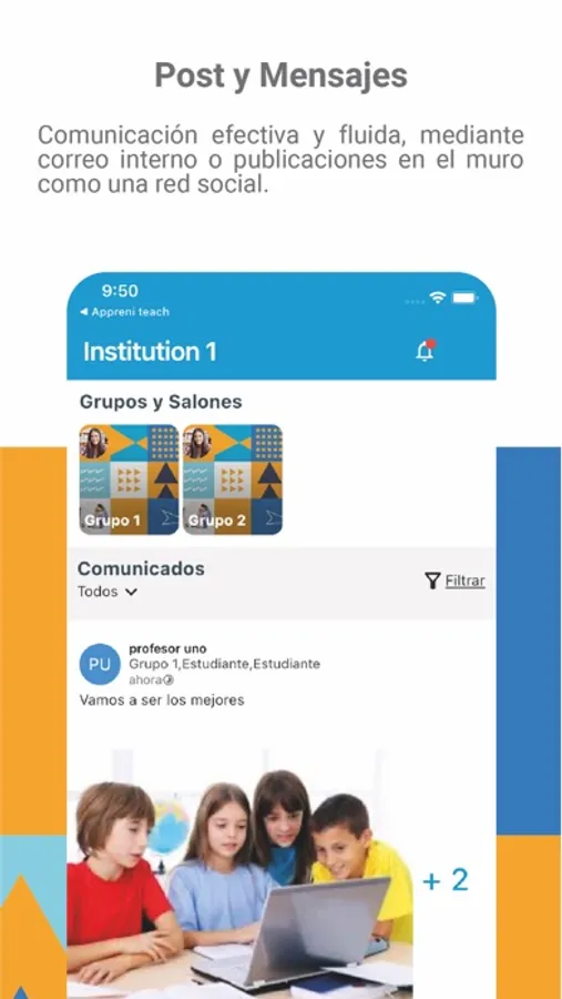 Comunicación efectiva y eficiente en el interior de una institución, comparte, reporta, explora y diviértete, en Appreni puedes visualizar post publicados por la Institución como si fuera una red social, asignación de tareas, creación de eventos, envío de mensajes, visualización de reportes tipo jardín.