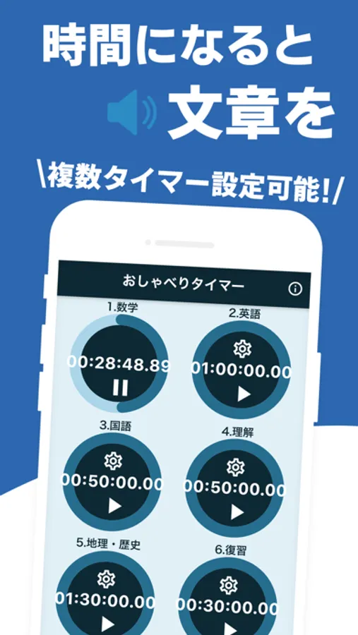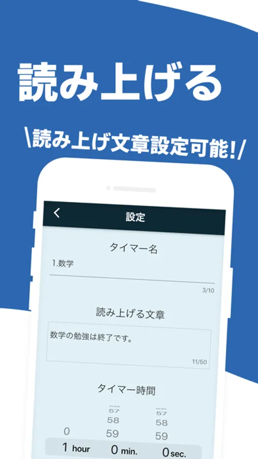 アラームの代わりに設定した文章を読み上げるタイマーです。