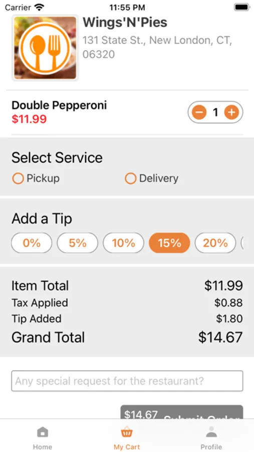 1. Get the Wings'N'Pies’s Online Ordering app and conveniently order from anywhere on your iPhone.