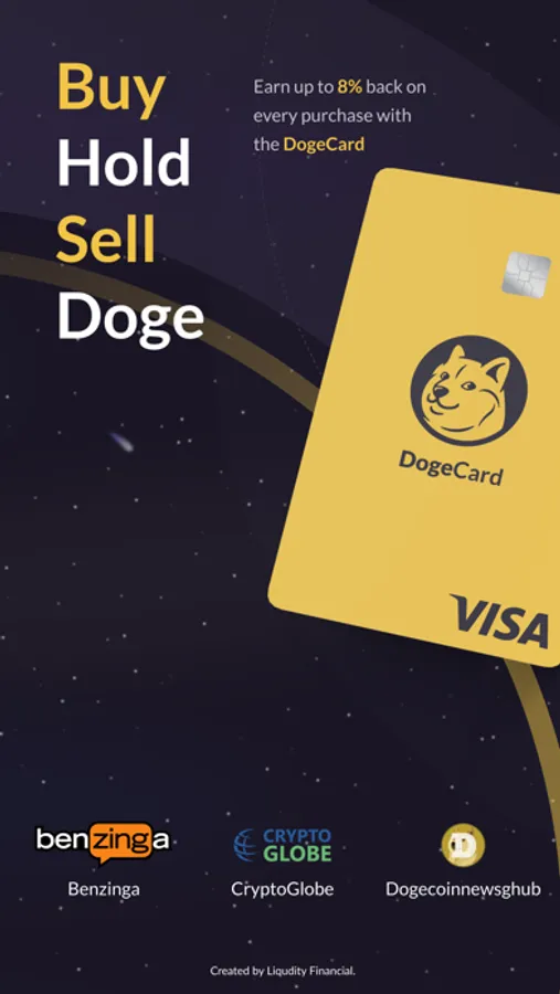 DogeCard is not a bank. DogeCard and Liquidity Financial are not insured by the FDIC. Dogecoin is not insured by the FDIC.