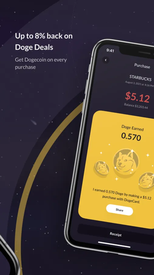 You will earn Dogecoin with each qualifying purchase on your DogeCard. Doge “rewards” are credited to you in accordance with our Rewards Terms. Qualifying Purchases do not include any other payment or transfer, including incoming transactions, outgoing transactions where you are the receiving party, peer to peer transactions, ACH Transactions, ATM transactions, fees, chargebacks, adjustments, or wire transfers. Dogecoin involves certain risks. For more information, see the Rewards Terms.
