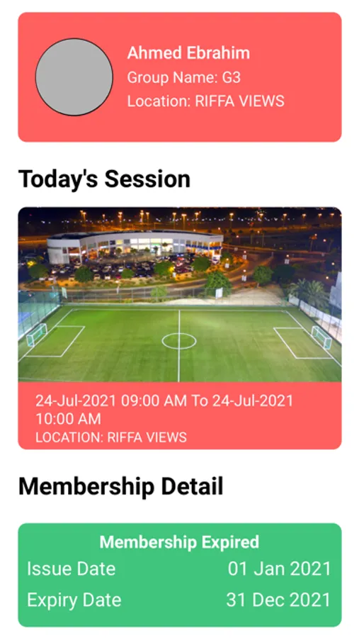 Players and Parents can view sessions schedule, payment history and profile details for Ole FK Football Academy