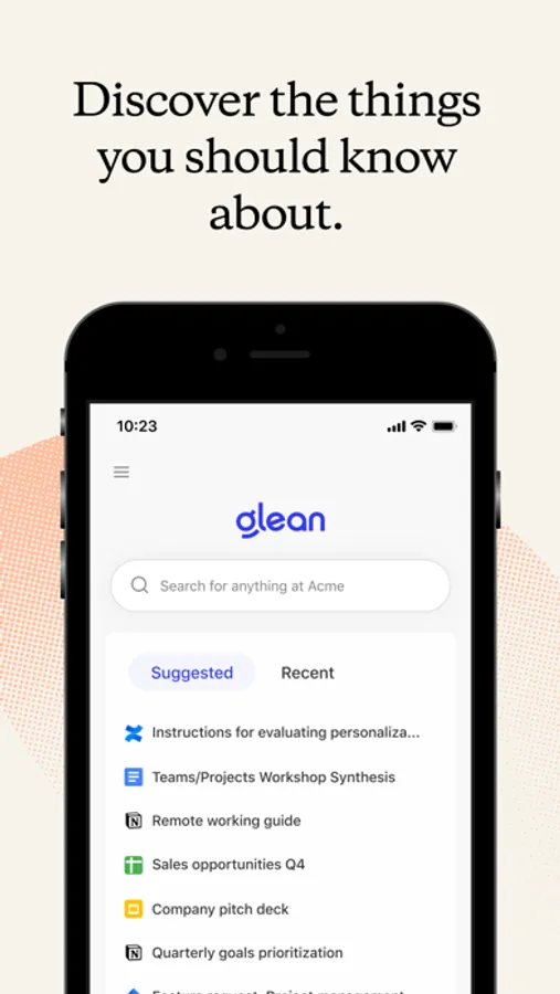 Glean searches across all your company’s apps to help you find exactly what you need and discover the things you should know.