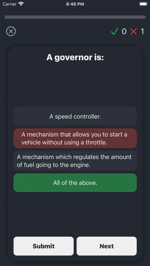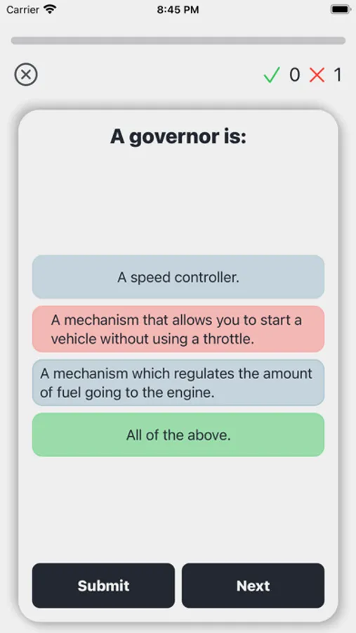 - The practice test consists of multiple-choice questions randomly chosen from a database of 160+ questions.