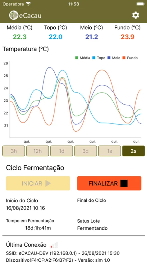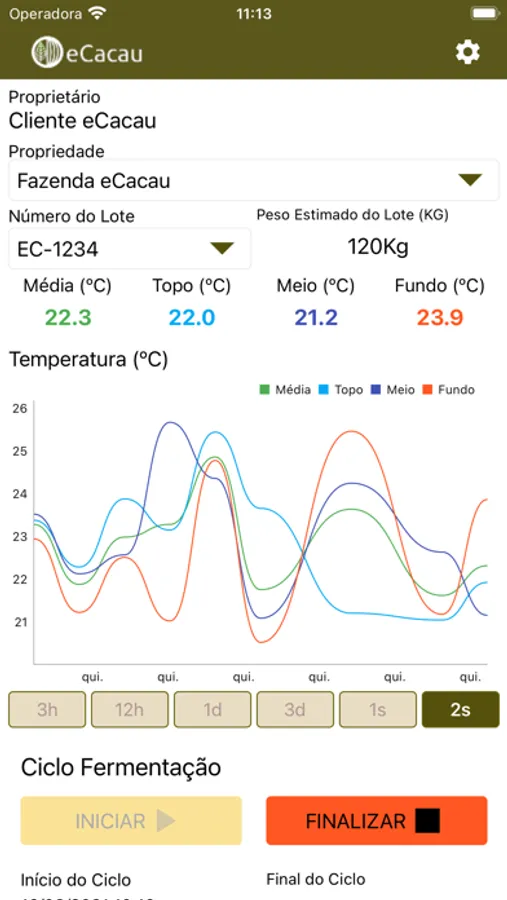 Com o eCacau, é possível monitorar a temperatura de fermentação seus produtos a distância (A aquisição dos dispositivos eCacau é necessária).