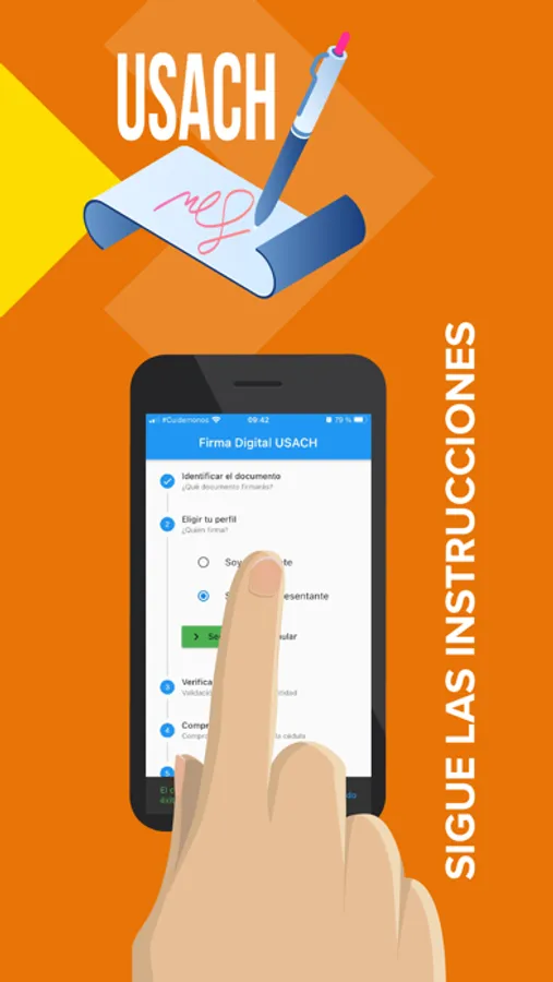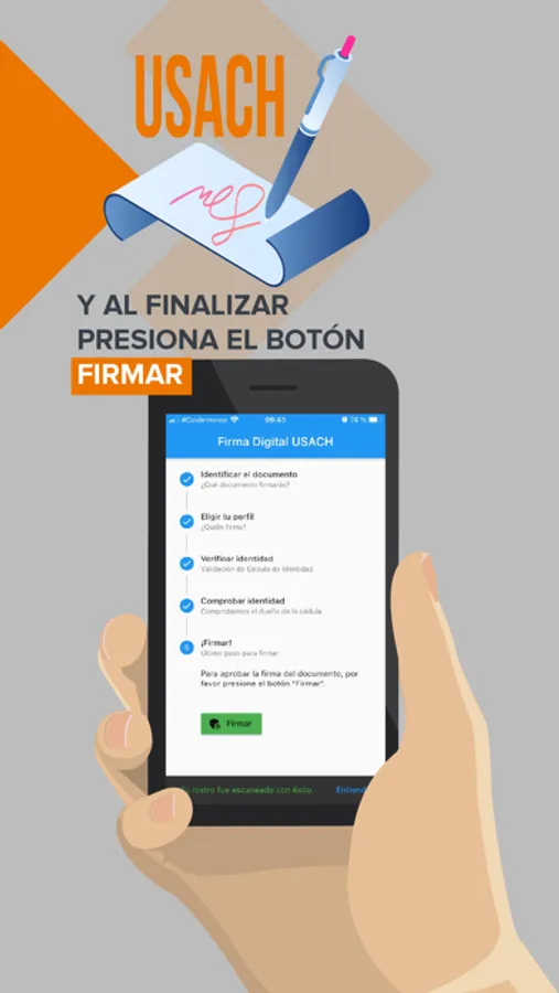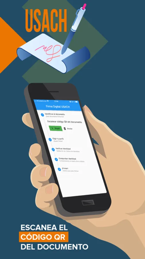 Mediante la App "Firma Digital Usach" puedes firmar de forma electrónica documentos, tales como el mandato de pagaré de arancel total de la carrera, requerido para el proceso de matrícula de alumnos nuevos de la Universidad de Santiago de Chile.