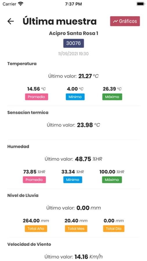 Aplicación para visualización de datos climáticos de la Bolsa de Cereales de Córdoba . Con esta app podrá visualizar valores actuales e históricos de corto plazo. App y sistema web, todo con una única contraseña.