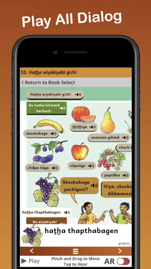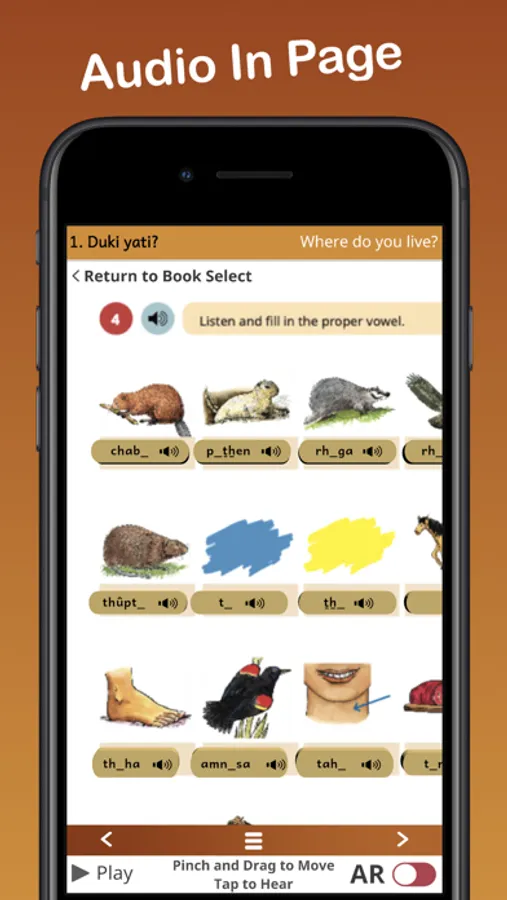 The Stoney Nakoda Media Player is a companion to the Stoney Nakoda Textbooks. Just point your phone at the page and tap to hear Native speakers pronounce the words. The AR and Page Modes gives you complete access to the textbook vocabulary and audio with an easy tap and swipe interface.
