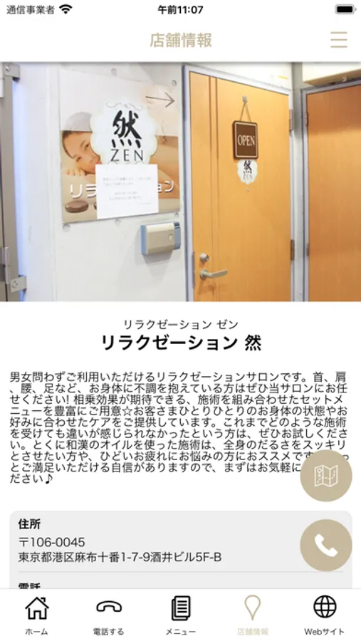 店舗のマップが表示され、地図アプリとも連携しているので、初めてのご来店の時も簡単に見つけることができます。