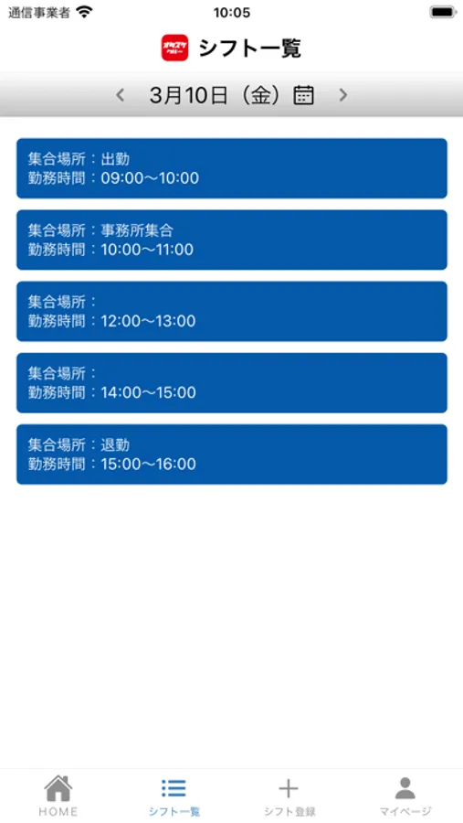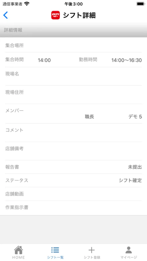 シフトの提出やシフト決定通知、アルバイト当日の勤怠管理や作業内容、報告等をアプリ一つで実施可能です。