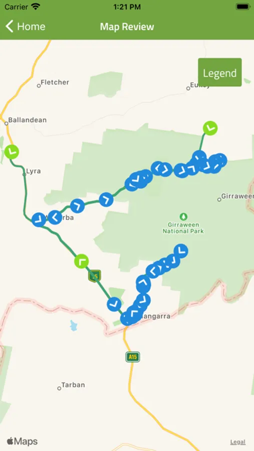 The application is downloaded via WIFI, prior to leaving, and once downloaded it requires no internet signal or phone reception to operate, whilst driving through the National park.