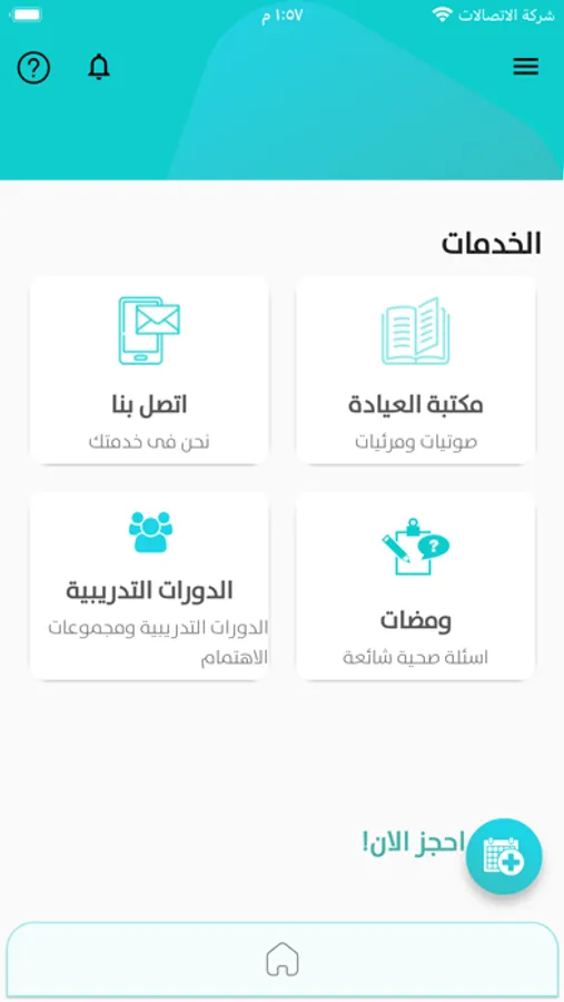 - اجراء المواعيد الافتراضية مع المختصين الصحيين (اتصال مرئي، اتصال مسموع، محادثة كتابية)