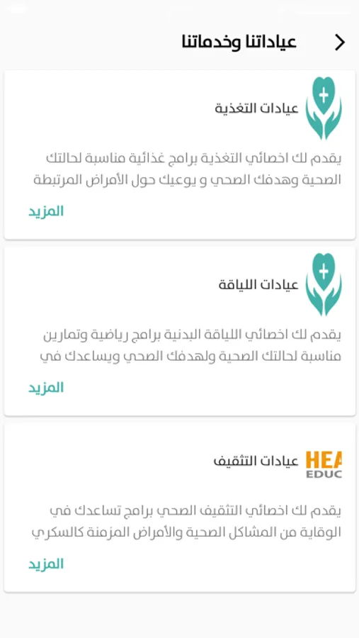 عيادة معنية بتعزيز نمط الحياة الصحي من ممارسة الأنشطة الرياضية وتعزيز التغذية الصحية ومكافحة الامراض المزمنة من خلال ممارسين صحيين في التثقيف الصحي، التغذية العلاجية، اللياقة البدينة، الغذاء والتغذية