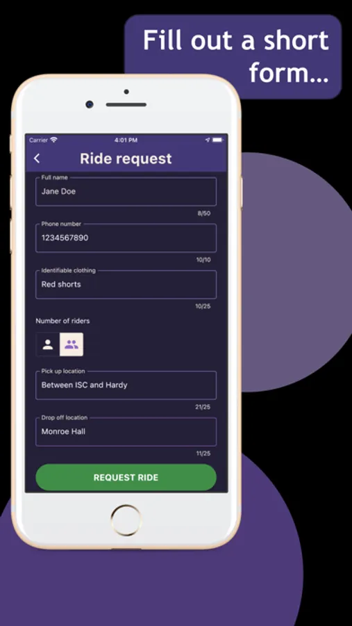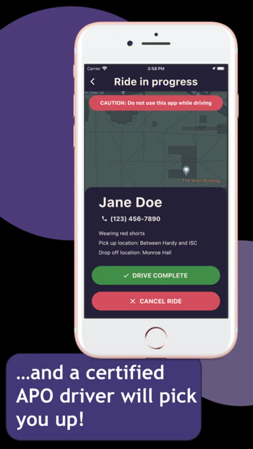 Only trained APO drivers see your ride requests. TWO certified APO drivers will pick you up and make sure you get to your destination safely.