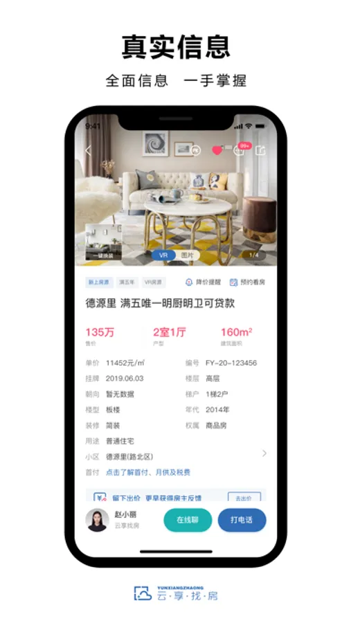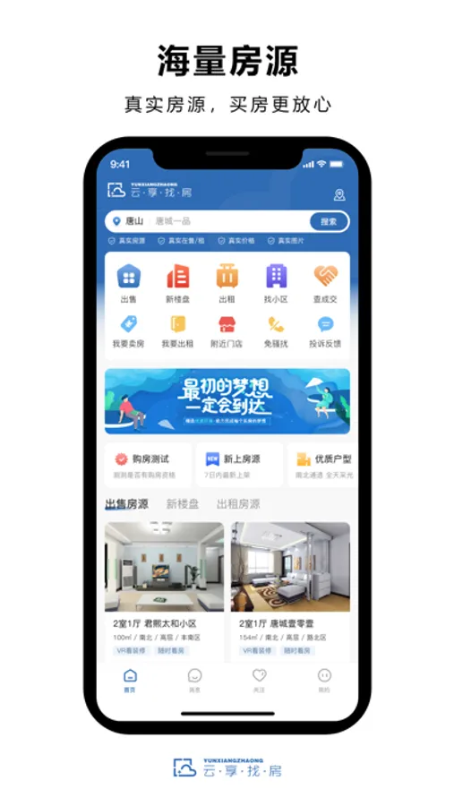 云享找房,专业的二手房、新房买卖租赁大平台,提供海量真实房源信息。打破信息壁垒,为您提供市场行情分析、房源成交历史、带看历史,并告知您关注的房源、小区信息动态,让您不错过好房源!