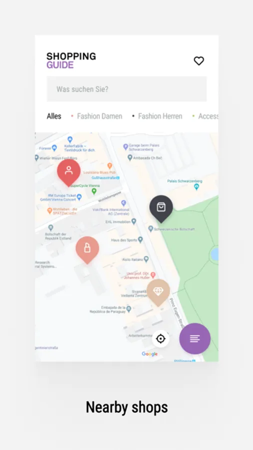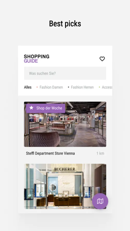 - Filtern Sie im Guide nach Kategorien und speichern Sie die Geschäfte, die Sie suchen oder die Ihnen interessant erscheinen