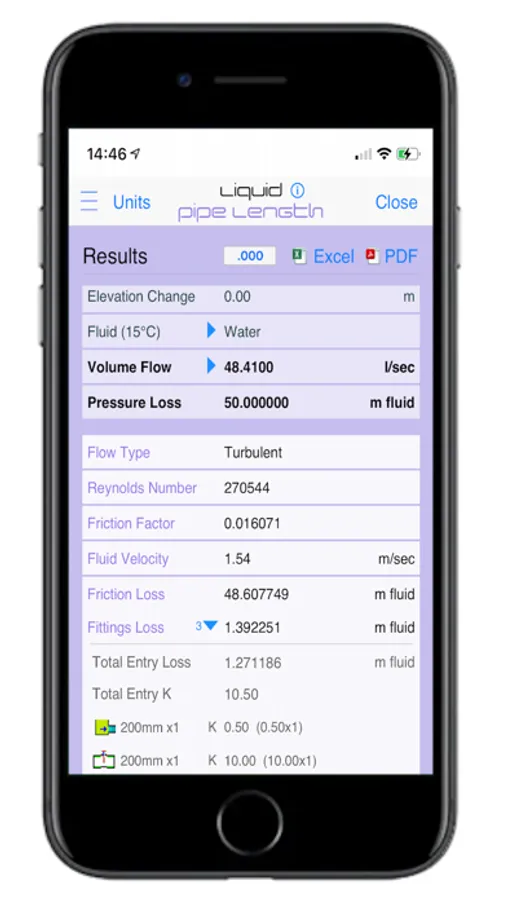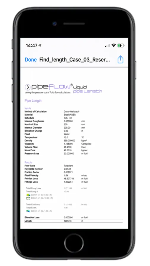 Engineers can easily perform maximum pipe length calculations in the office or on site. Professional Excel and PDF reports can easily be shared with others. Results can also be saved to the library within the App.