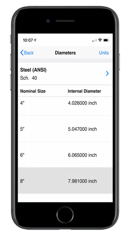 The App can operate in Imperial or Metric units and each individual field can be further customised to use a specific unit. Results values can be displayed to a specified number of decimal places.