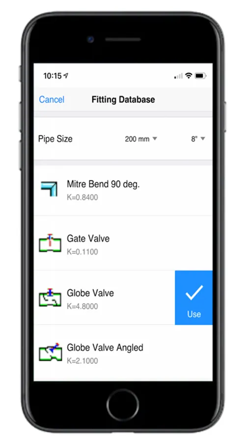 The Pipe Length App has an intuitive user interface that allows for easy entry of the input data, including changes in elevation, and selection of valves & fittings.