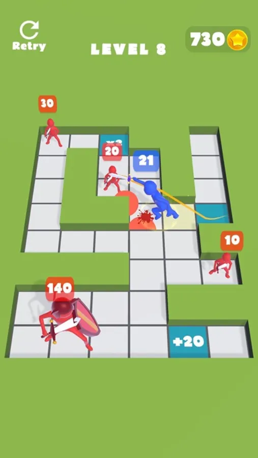 Funny levels are waiting for you. You have to make very clever moves to defeat the enemies.