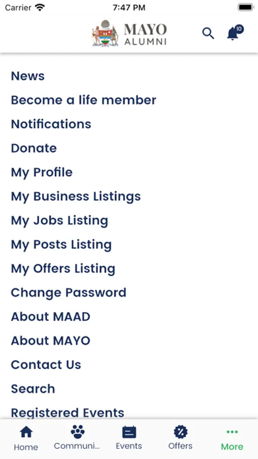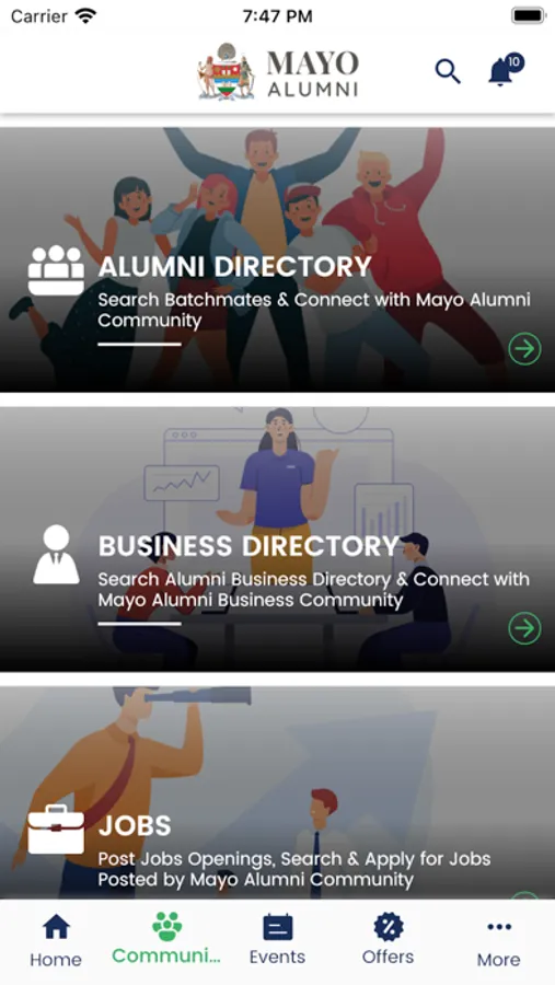 Mayo Alumni Screenshots