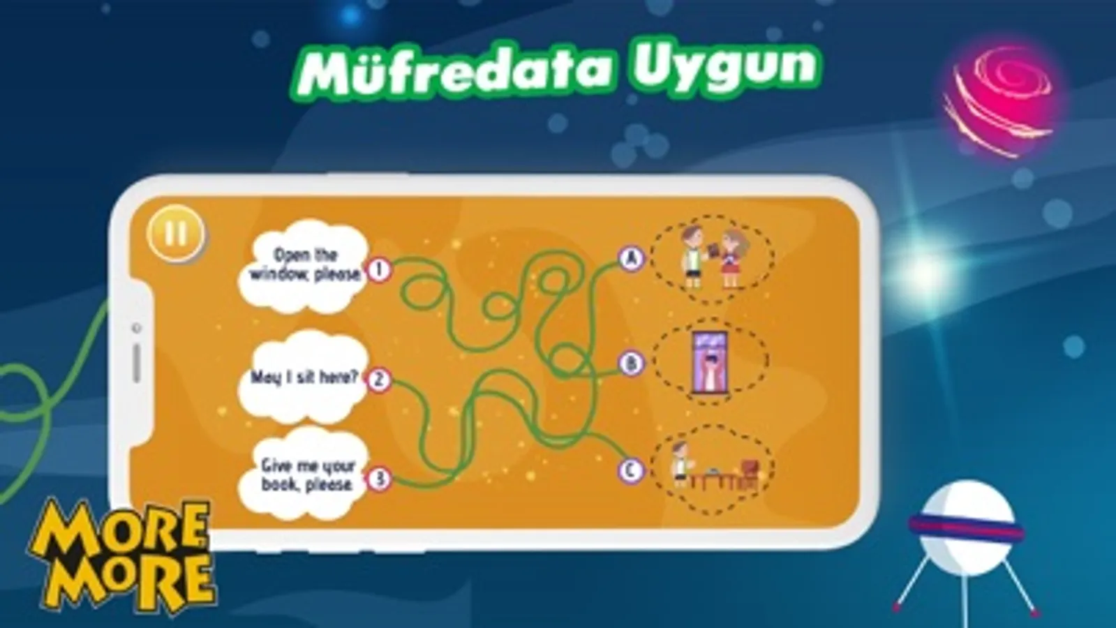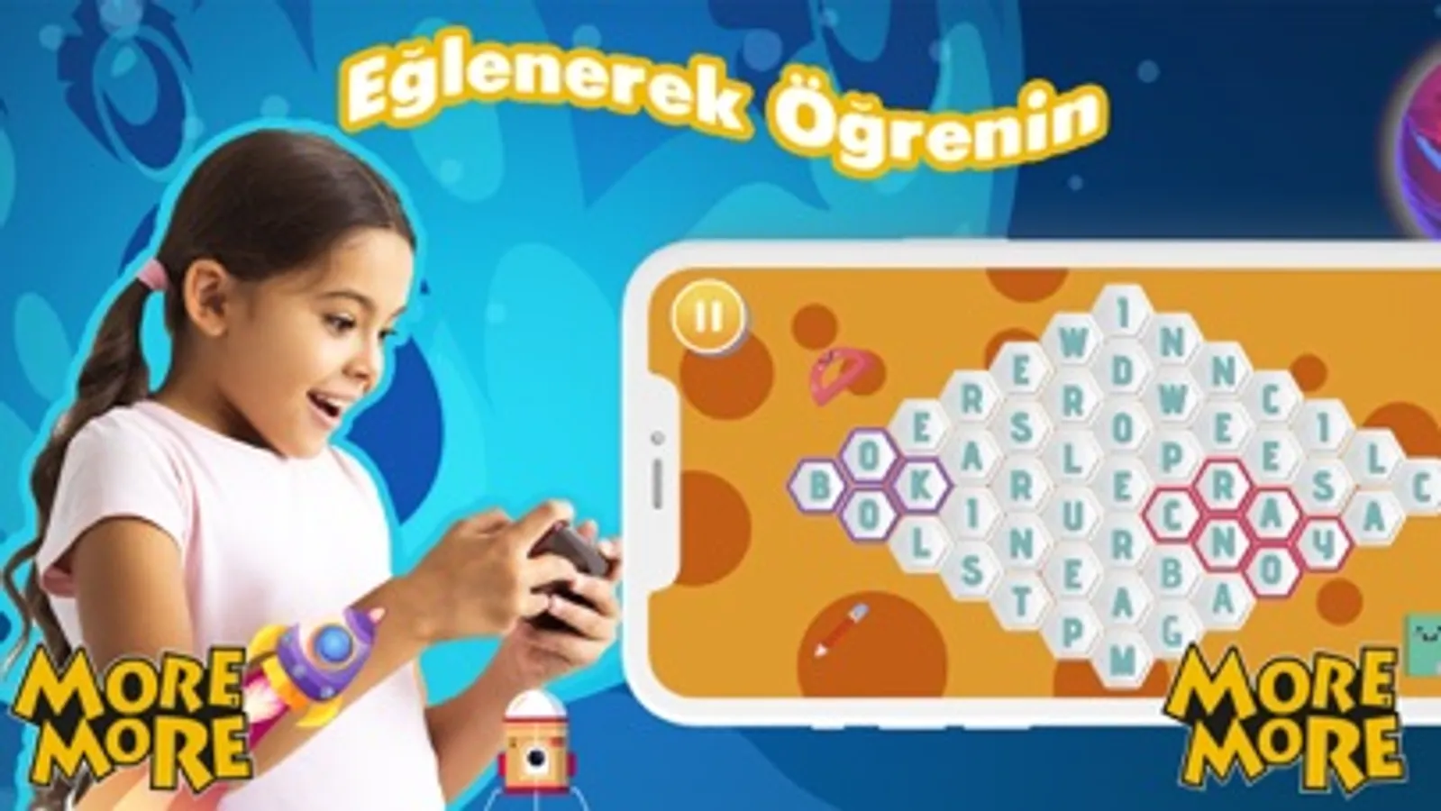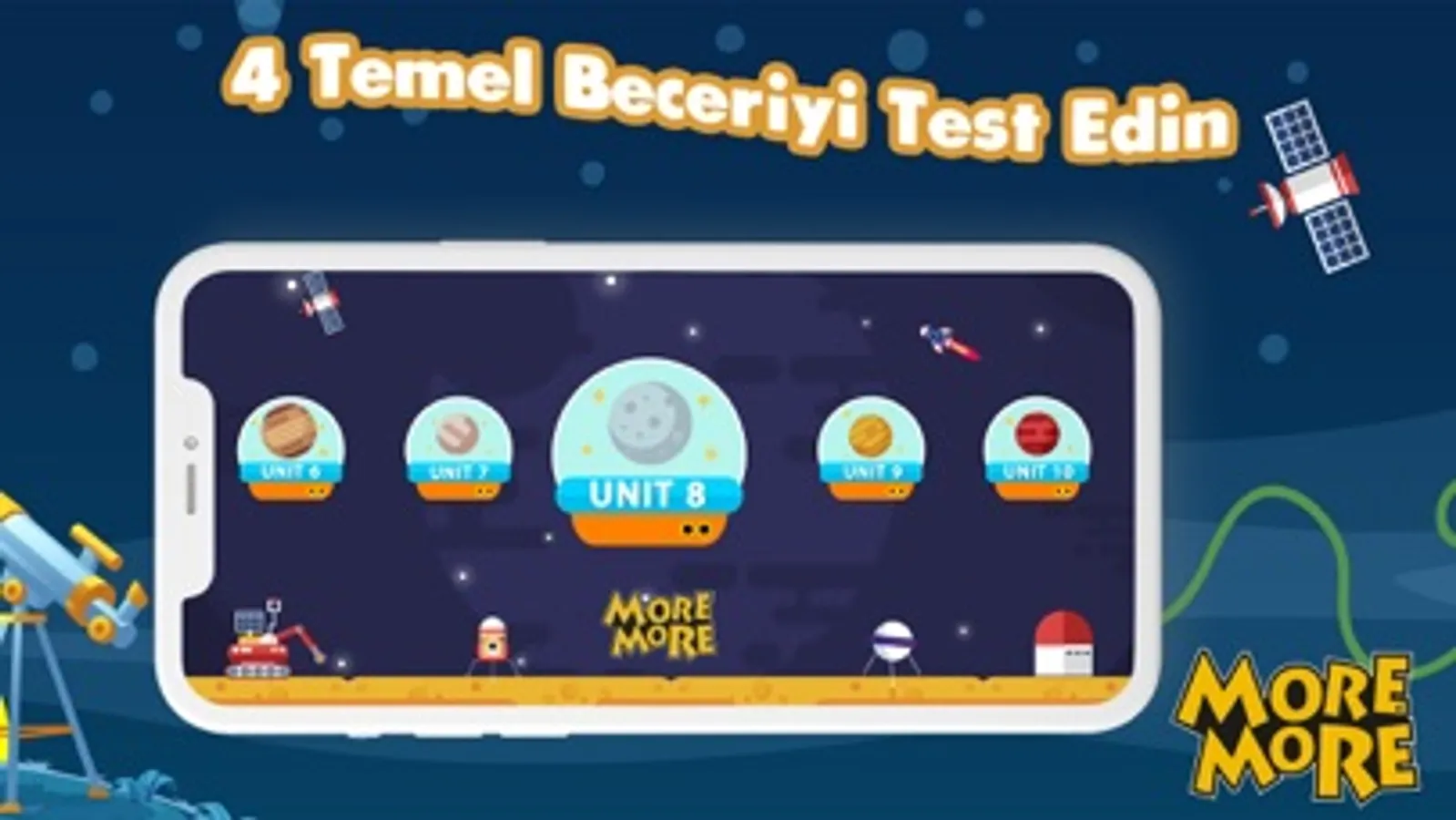 More & More 4. Sınıf Dijital Eğitim Platformu yıl boyunca çocuğunuzun elinizden düşmeyecek bir uygulama olacak. Yıl içerisinde yapılacak güncellemelerle birlikte sektördeki en kapsamlı uygulamaya şimdiden sahip olun. 100 oyuna sahip uygulamamız ile sıkılmadan bol tekrar yapma fırsatına sahip olacaksınız. Milli eğitim müfredatına tamamen uygun bu uygulama ile çocuğunuz İngilizceyi eğlenerek öğrenecek. Her yıl uygulamaya eklenecek sürprizlere hazır olun. İngilizce eğitiminde geliştirdiğimiz dijital oyun temelli yöntem ile çocuğunuz 4 beceriye (okuma, yazma, dinleme ve konuşma) göre kendini test edebilecek.