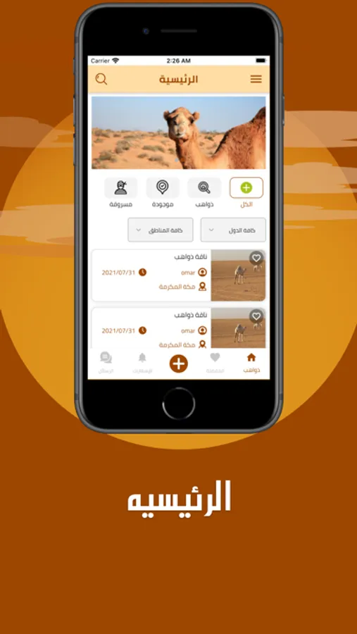 ذواهب افضل تطبيق خاص بالابل من خلاله يتمكن الاعضاء من اضافة اعلانات خاصة الابل والتي تضاف ضمن تصنيفات التطبيقات
