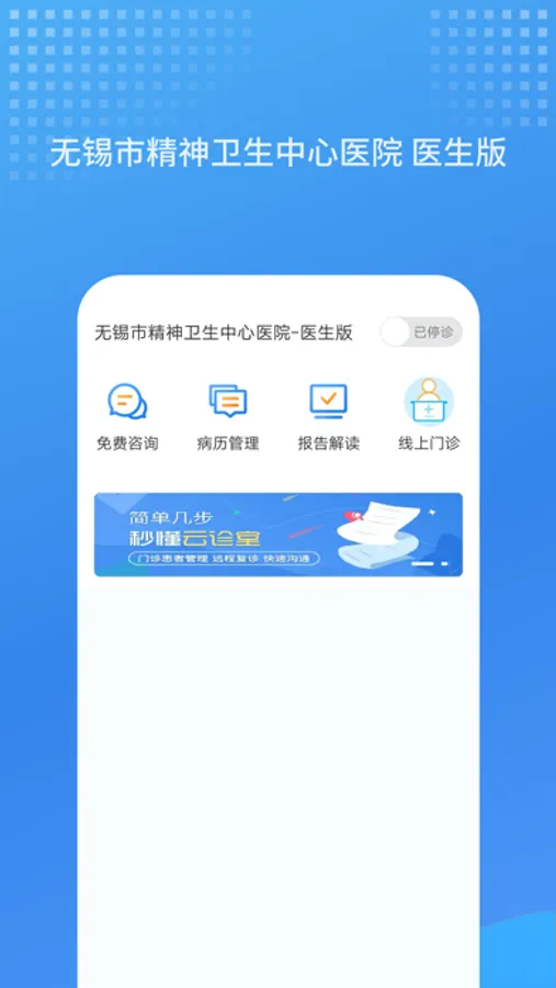 无锡市精神卫生中心医生版APP是由杭州恒生芸泰网络科技有限公司提供开发的智慧医院手机客户端(医生版)。为医生提供移动办公,支持手机端患者管理,图文问诊,在线开方等功能。