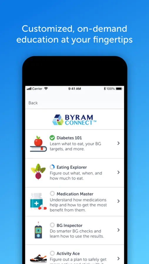 ByramConnect is an award-winning, FDA-cleared, in-app digital assistant, that provides tailored guidance in the moment. Achieve your diabetes health goals through ByramConnect’s guidance, education, motivation, and accountability.