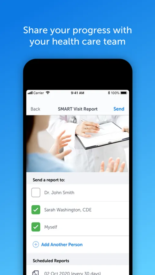 • Share progress with your care team by sending a SMART Visit Report with the click of a button